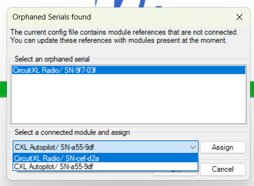 In this case, the orphaned serial is from the Radio, so we select the Radio from the list.